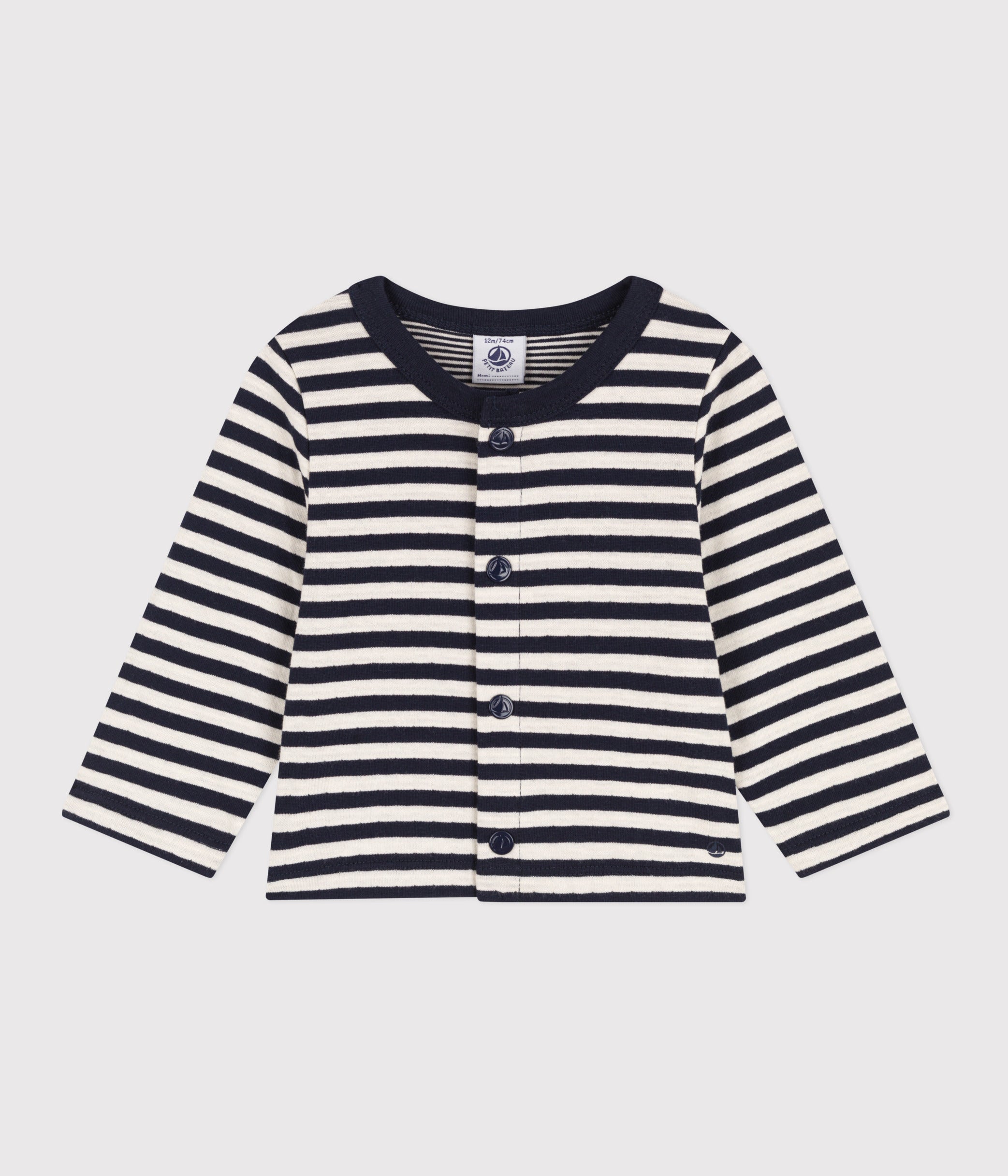 BABIES' STRIPY TUBE KNIT CARDIGAN