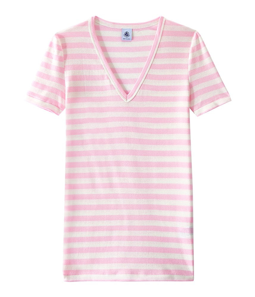 WOMENS' V-NECK STRIPED T-SHIRT