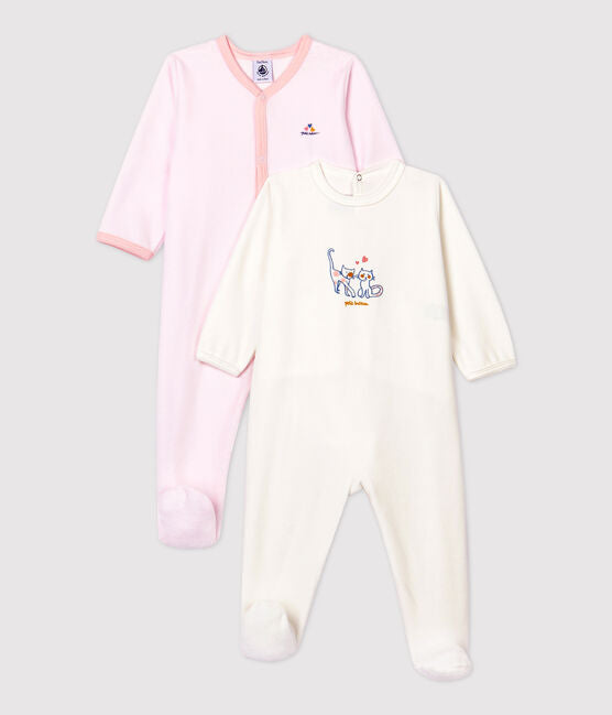 • 2 rompers in velour, the ideal fabric for pyjamas. As it is soft and comfortable, it keeps your baby nice and warm.