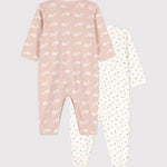 • This set is made up of tubular back bridge rompers, two extremely soft knits connected together for a unique softness. It opens with press studs at the back and at the crotch.
