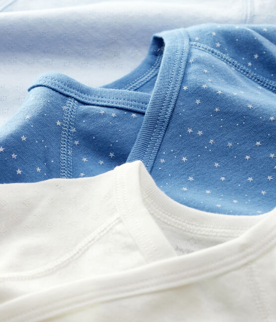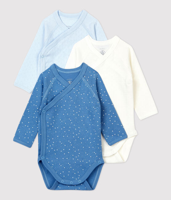 • 3 long-sleeved wrapover bodysuits in Petit Bateau's iconic rib knit.