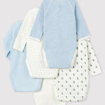 • 5 long-sleeved bodysuits in Petit Bateau's iconic rib knit.