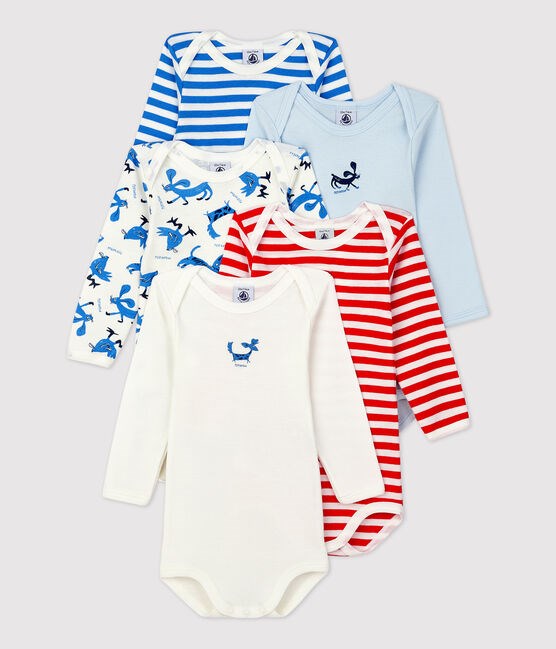 • Pack of 5 bodysuits in Petit Bateau's iconic rib knit.