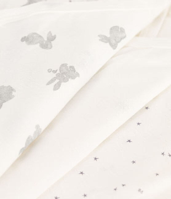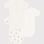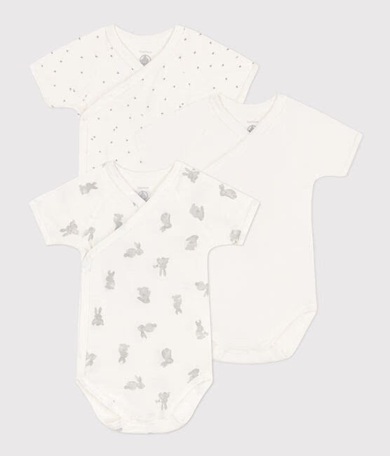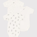Pack of 3 short-sleeved wrapover bodysuits in Petit Bateau's iconic rib knit.