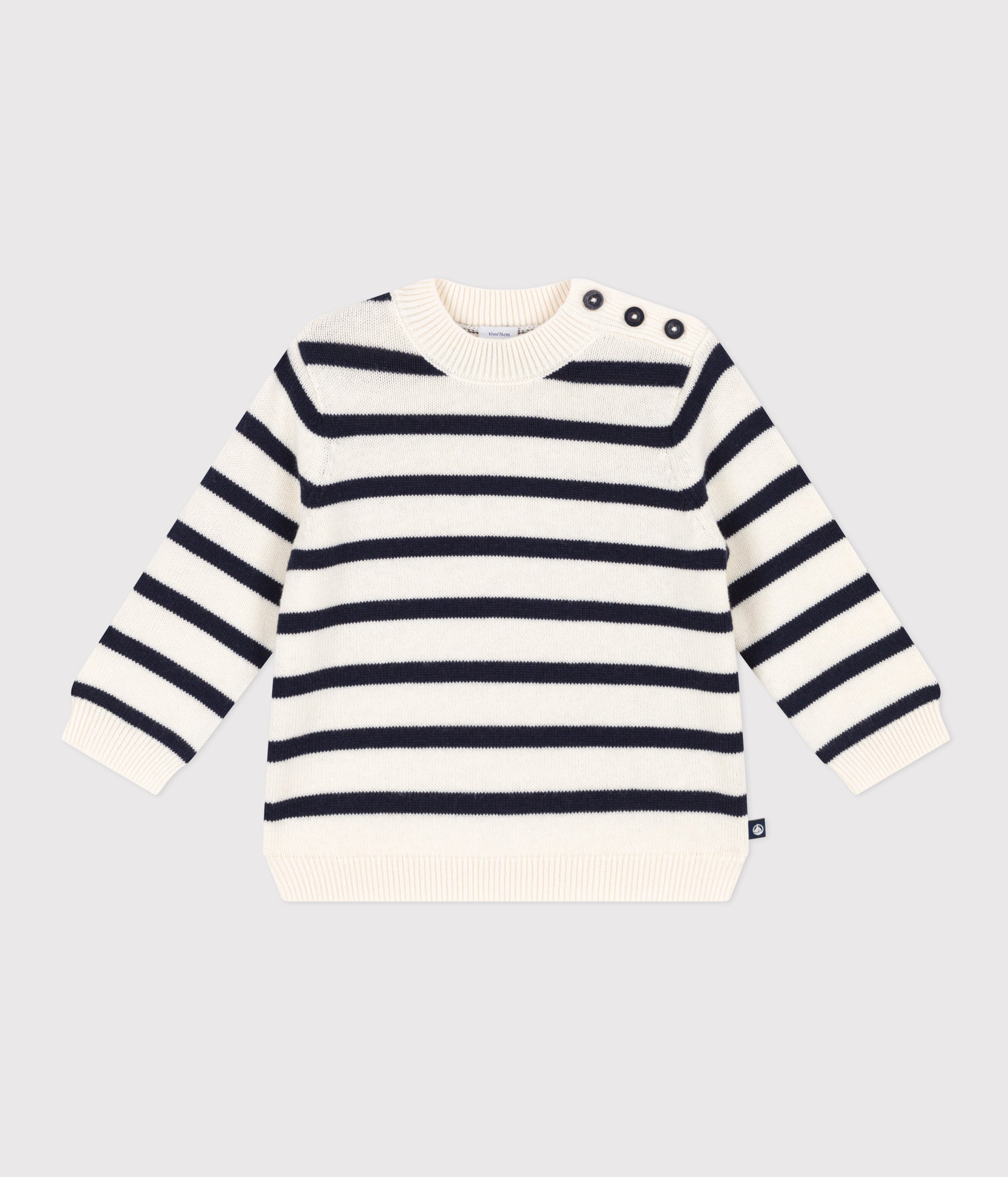• Soft and warm sailor baby sweater made of wool and cotton knit.