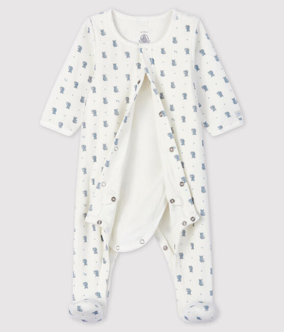 • Super 2-in-1 pyjamas: a sleepsuit with a poppered fastening in front + a built-in bodysuit.