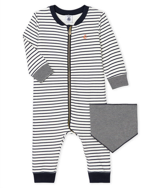 BABIES' STRIPED ROMPER & BANDANA GIFT SET