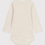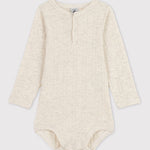 BABIES' LONG-SLEEVED BODYSUIT MADE OF DROP NEEDLE RIB KNIT, AN ELEGANT, SOPHISTICATED YET STRETCHY AND COMFY FABRIC.