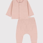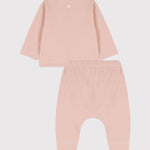 2-PIECE SET IN A TUBE KNIT MATERIAL: 2 GENTLE FABRICS COMBINED TO CREATE A UNIQUELY SOFT FEEL.