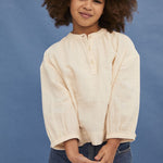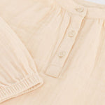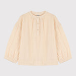 • Long-sleeved plain blouse made of cotton gauze, a soft, airy material.