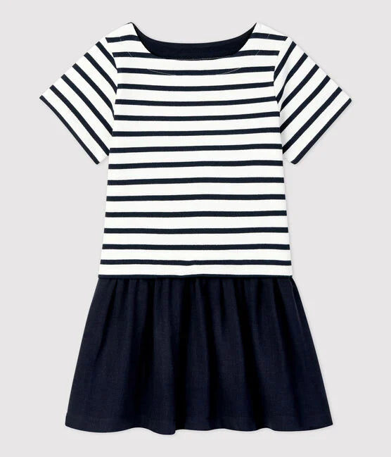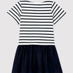 • The top of the dress is made from the same fabric as Petit Bateau's iconic Breton top.