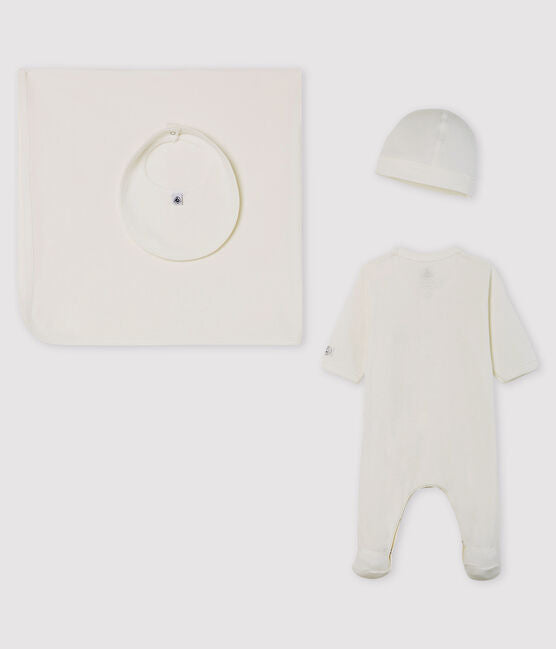• Set contains 1 romper, 1 bonnet, 1 bib and 1 bath towel in Petit Bateau's iconic rib knit.