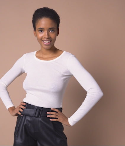 WOMENS' RIBBED WOOL BLENDED L/S T-SHIRT