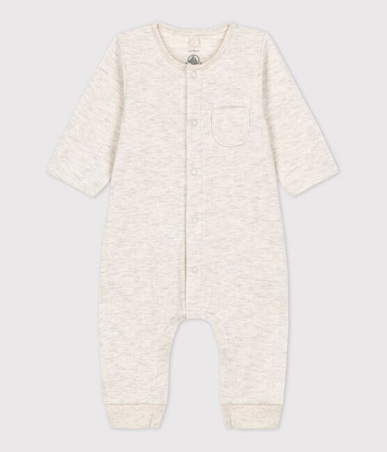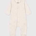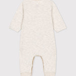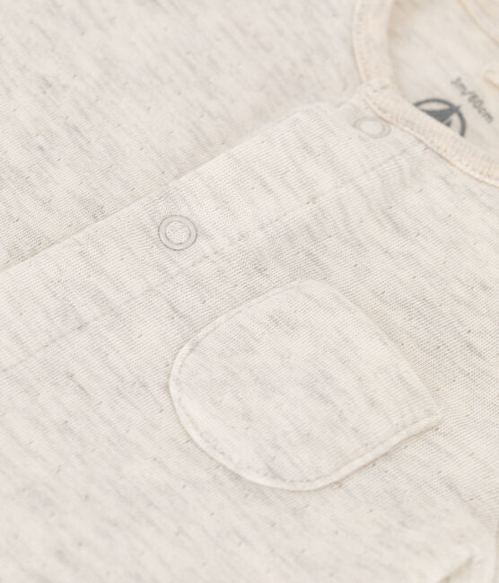 FOOTLESS ROMPER IN A TUBE KNIT MATERIAL: 2 GENTLE FABRICS COMBINED TO CREATE A UNIQUELY SOFT FEEL.