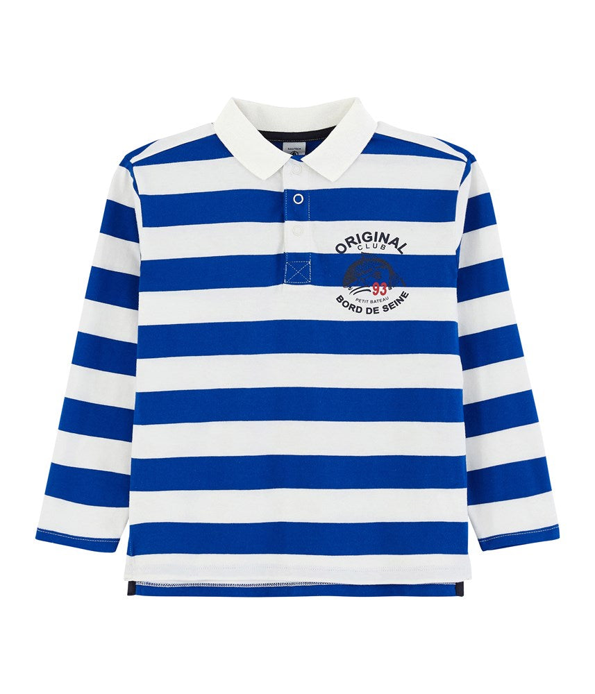 • Long-sleeved polo shirt with a screen print made of light jersey for extra comfort.