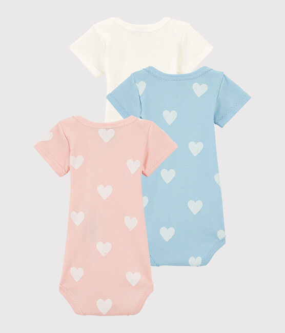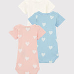 • 3 short-sleeved bodysuits in Petit Bateau's iconic rib knit.