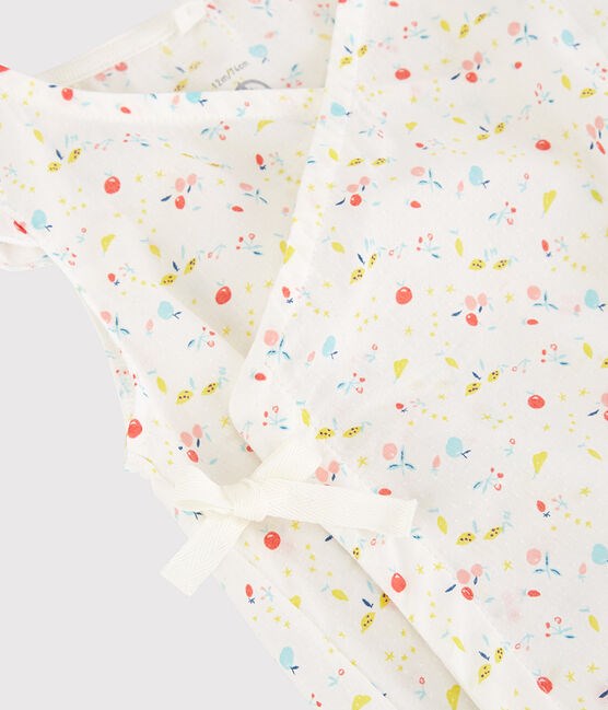 • Wrapover opening fastened with poppers at the front with a little bow, and poppers between the legs.