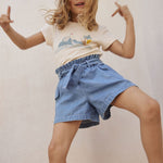 • We love the flared design of these shorts with their pockets on the sides and the tie belt that modernises them.