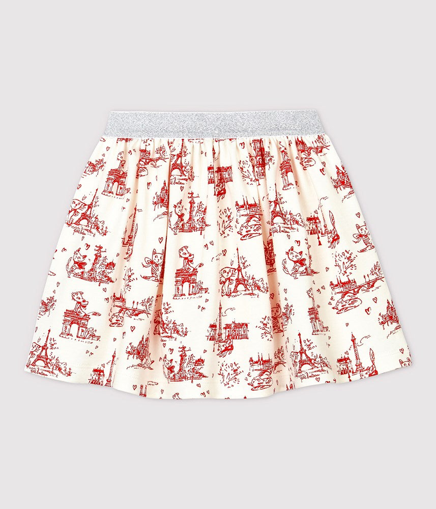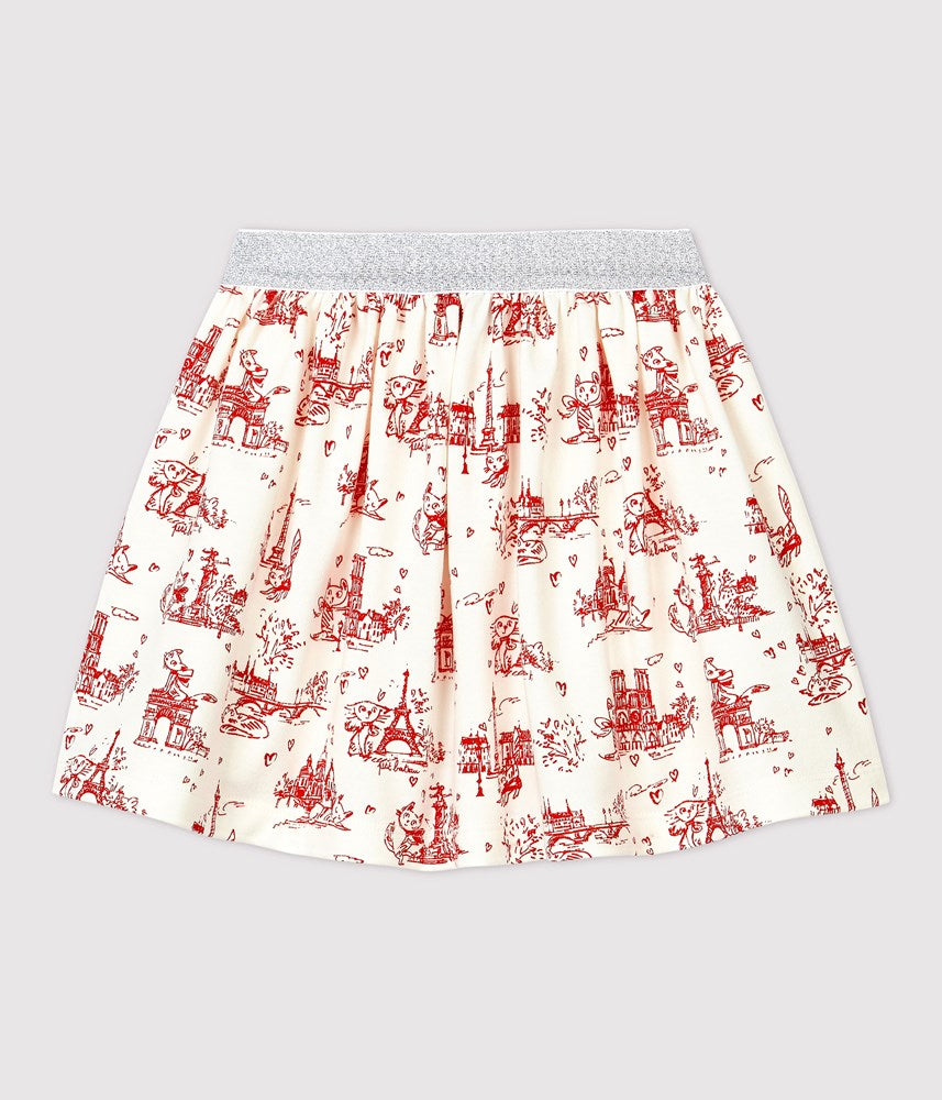 • gathered skirt is embellished by a Toile de Jouy print inspired by Petit Bateau's archives and its heritage, the city of Paris.
