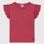 • A T-shirt with a delicate, feminine look thanks to its ruffled sleeves, for wearing on any occasion.