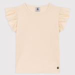 • A T-shirt with a delicate, feminine look thanks to its ruffled sleeves, for wearing on any occasion.