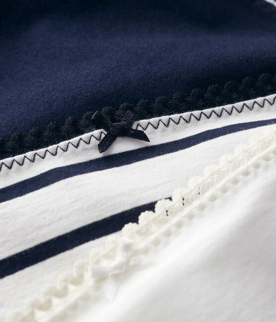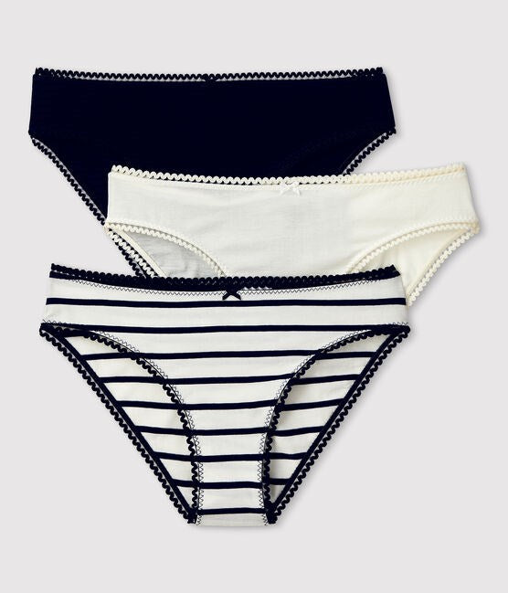 • Pack of 3 soft cotton briefs with slight stretch, elasticated rickrack trim, small bow.