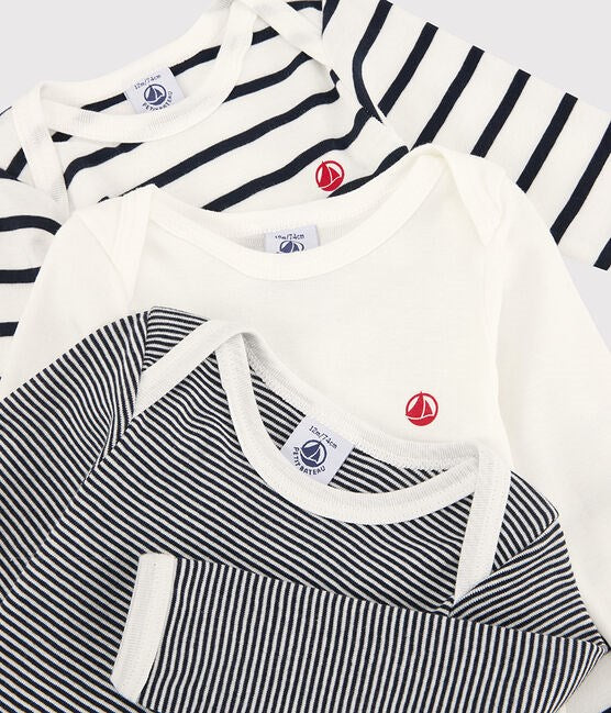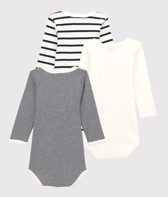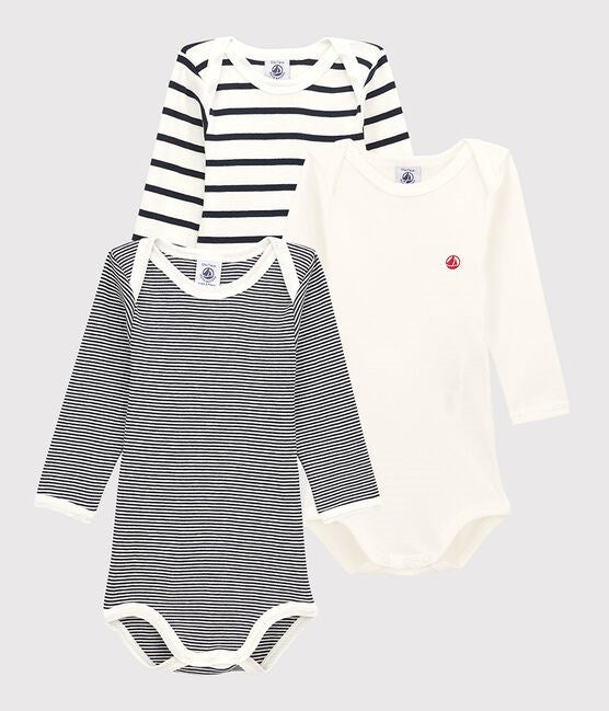 • 3 long-sleeved bodysuits in Petit Bateau's iconic rib knit.