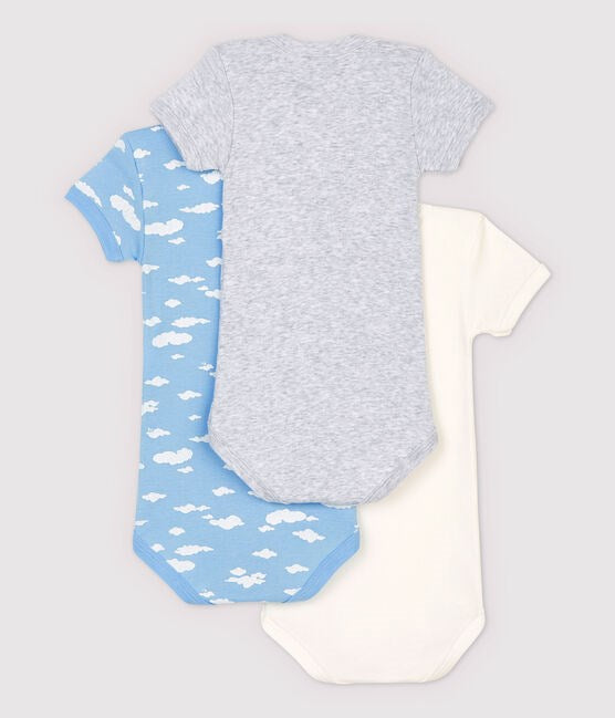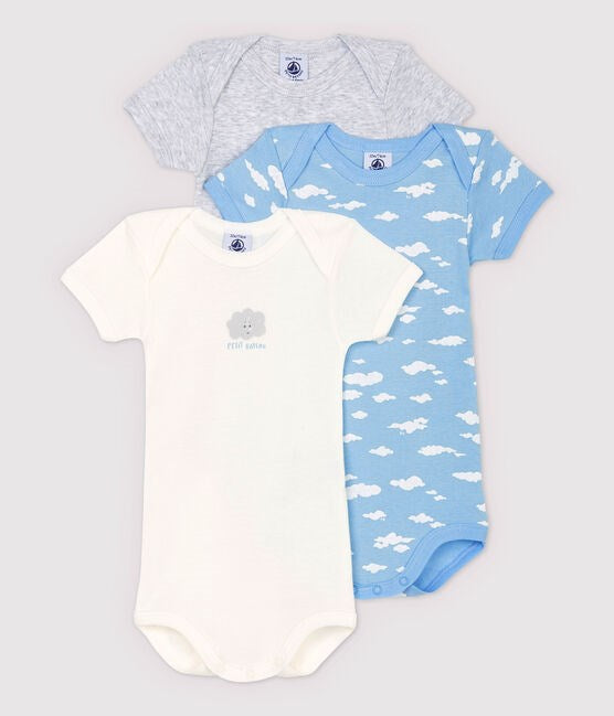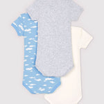 • 3 short-sleeved bodysuits in Petit Bateau's iconic rib knit.