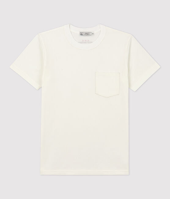 • Straight, unisex shape, round neck and chest pocket.